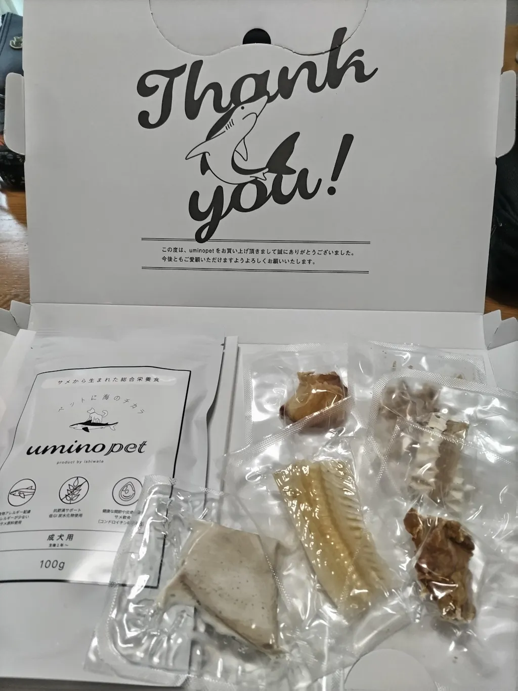 マーさんシーさん フードの袋を開封した時にお出汁のよい香りがしました。油っぽいことは全くなく犬達の食いつきもよかったです。同封のおやつも一つ一つが真空パックになっているので酸化の心配もなく安心してあげられます